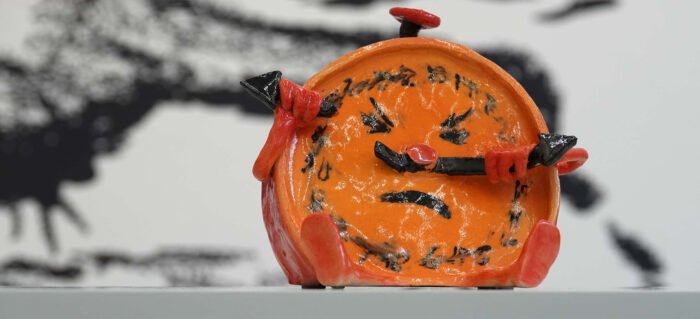 Pour Valentine Cotte, travailler la glaise est une forme d’autothérapie (vidéo de la performance Massa à Erretegia en 2020). Elle croise son goût pour la culture médiévale – telle sa cotte de mailles en céramique exposée à St-Art 2025 – avec le détournement, ainsi sa Théière d’adelphité (2023) avec quatorze becs verseurs et une trace de gintsugi ou son bestiaire de (très petites) gravures imprimées sur des compresses de pharmacie (à la Filature), une occasion aussi de jouer sur les mots : la série s’intitule Tes maux (2022) et les pièces Panse-ments.
