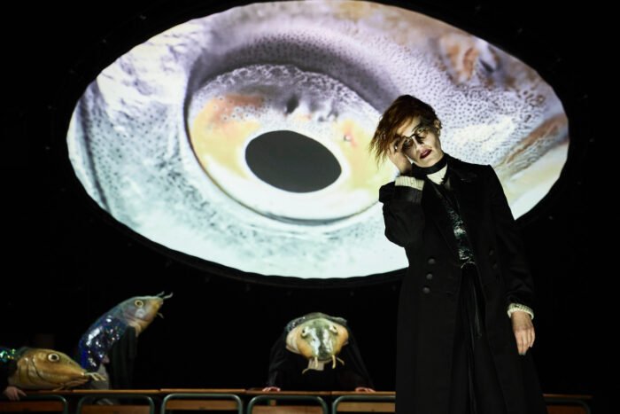 Et le texte est daté. Le fonctionnement du couple au XIXe est bien éloigné de celui du XXIe plongeant le public dans une fiction hors-sol nourrie de figures poncives et archaïques qui s’affairent mécaniquement. Ce que renvoie cette gigantesque tête d’autruche, affichée plusieurs fois sur le fond, qui découvre totalement éberluée l’agitation sous perfusion de ces consœurs volatiles ?